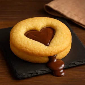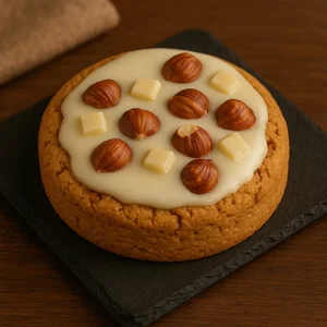 Sablé épais, noisettes entières et nappage chocolat blanc